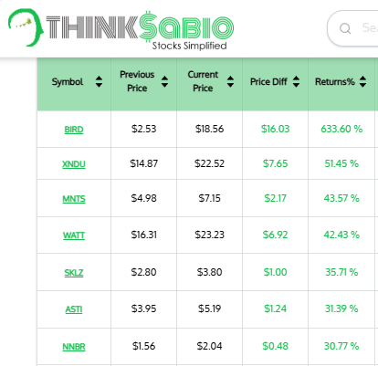 Gainers: #BIRD #XNDU #MNTS #WATT #SKLZ #ASTI #NNBR